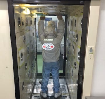 製造工場では、工場内を清潔に保つように、社員一人ひとりが設備の清掃など、環境美化を励行しています。